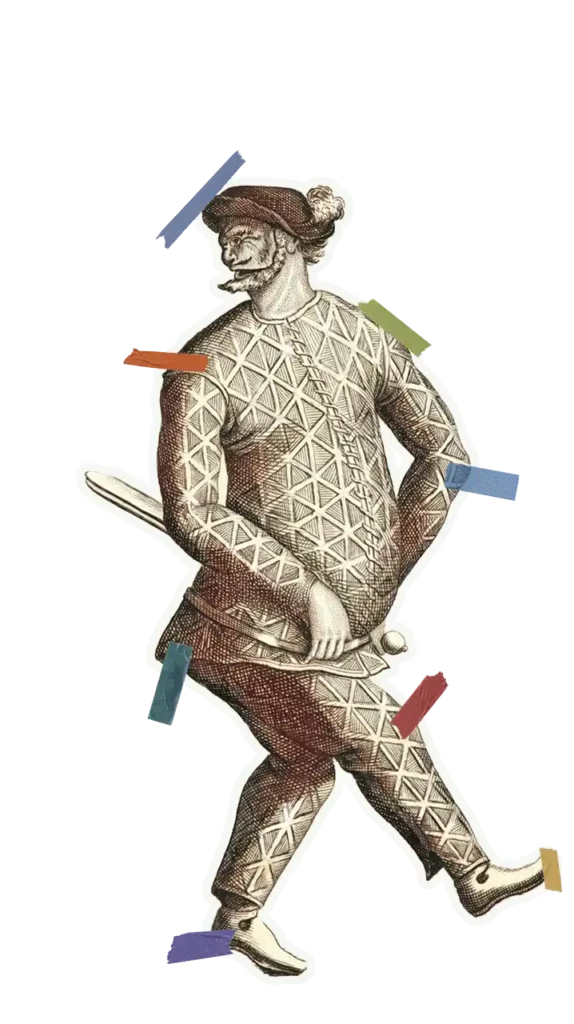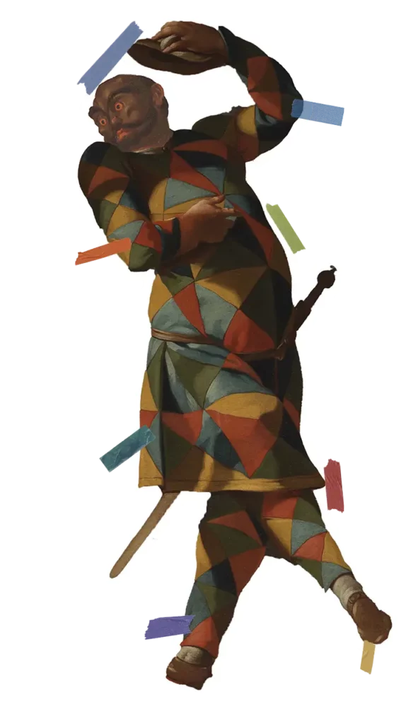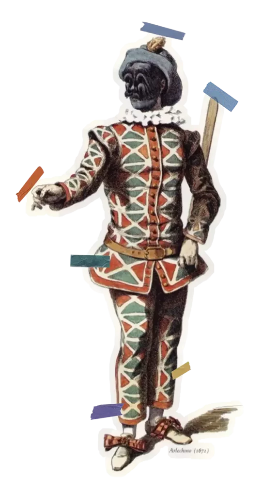 Zanni inspiré des Hellequins, divinités infernale menant la sarabande, et des esclaves des atellanes (comédies latines préclassiques).